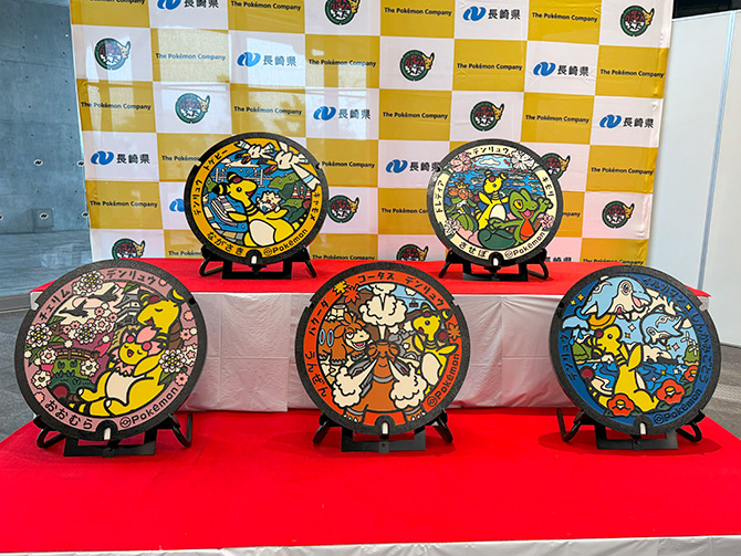 長崎県では初となる、ポケモンたちがデザインされたマンホール『ポケふた』が5枚寄贈され、お披露目会が行われました。