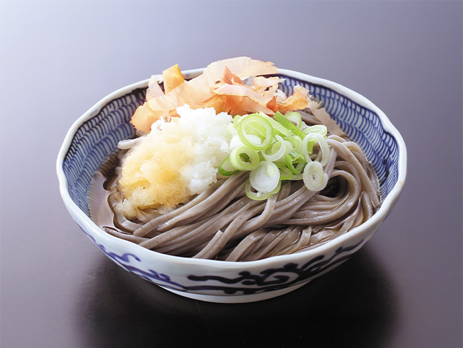 福井県産のそばの実を自社製粉し、挽きたてのそば粉でカイリューのように力強くコシのある平打ちのそばに仕上げました。福井県産のそばは県内各地で昔から育てられ続けてきた在来種で、小粒ながら味が濃く香りに優れていることが特徴です。つなぎも福井県産にこだわり、福井県立大学で開発され福井県内で栽培された『ふくこむぎ』を使用しました。