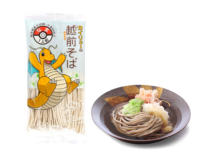 カイリューと一緒にデザインされたお花畑はそばの花をモチーフとしており、福井のお土産にぴったりです。
