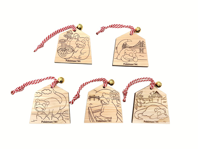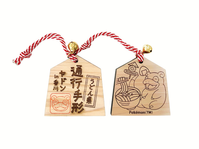 香川県産ヒノキを使用し、香川県の推しポケモンの「ヤドン」と、香川の特産品や名勝をモチーフにした木製の通行手形・全5種類をご用意しました。森で大切に育てられた木から生まれた、香川らしい旅の記念品として、うどん県の思い出をお楽しみください。