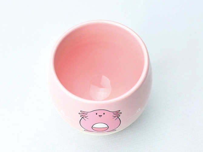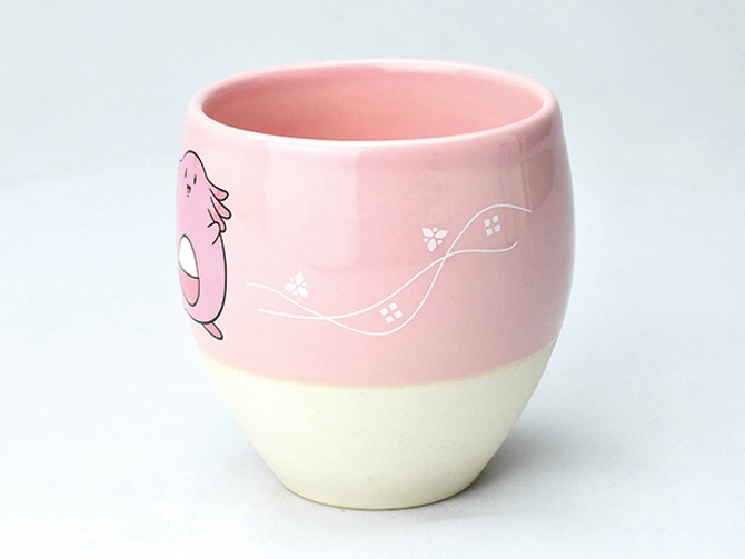 ラッキーをイメージしたピンクと白色のカラーに手触りの良いやわらかなタマゴ型のカップです。熱いものを入れても持ちやすい二重構造が特長で、カップの構造内部に入った小さい粘土玉により、揺らすとやさしい土鈴の音がします。