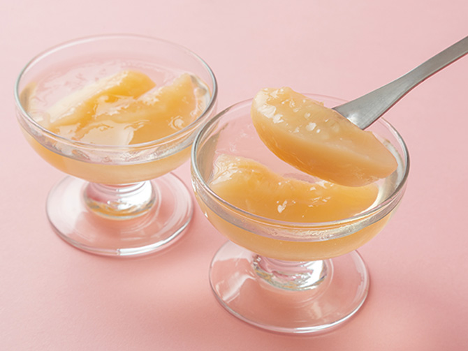旬の福島県産白桃を使用したデザートスイーツです。とろけるゼリーにふくしま自慢の美味しい桃を包み込みました。冷蔵庫で冷やすとよりおいしくお召し上がりいただけます。