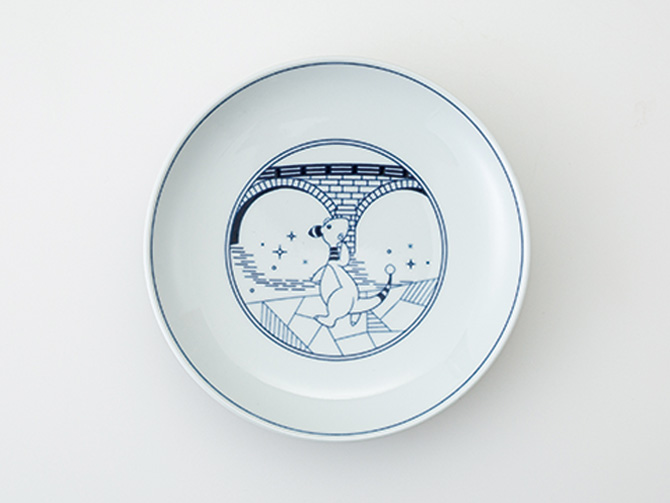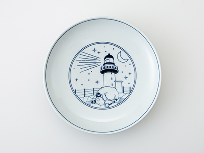 長崎県の伝統工芸品・波佐見焼。日常食器として使いやすいシンプルなお皿に、長崎をイメージしたイラストと様々な表情のデンリュウをデザインしました。 白磁に呉須(藍色)で描く「染付」の技法と、「パット印刷」という技術を使用しています。お料理はもちろん、インテリアとして飾ってもかわいいアイテムです! 箱にもこだわり、銀色の箔押しをしています。ギフトにもおすすめです。 絵柄は、公園・橋・灯台の3種類があり、こちらの商品は単品での販売です。